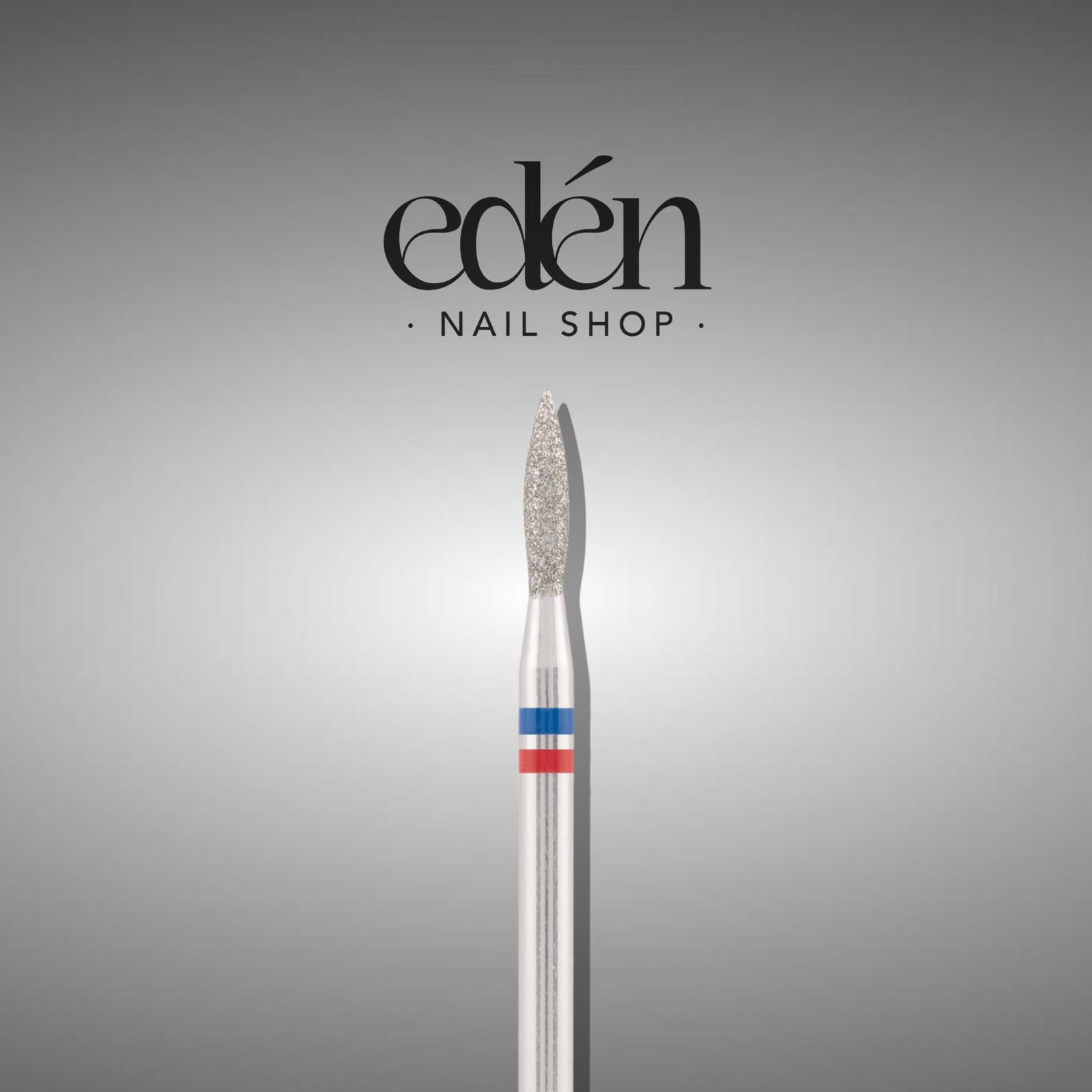 Fresa de diamante EDEN "LLAMA" azul-rojo seguro, L- 8,0 mm, Ø2,1 mm