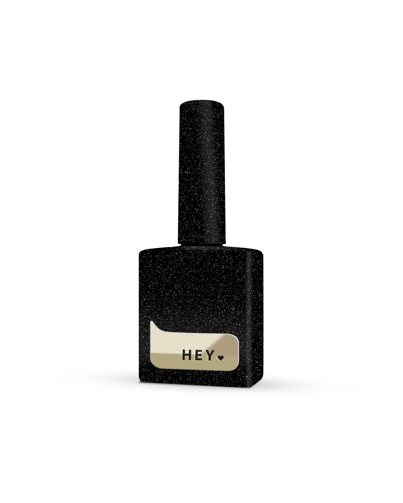 Esmalte semipermanente POWERFULL de la marca HEY🖤 es el negro con brillo holográfico y partículas reflectantes.